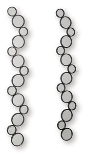 Time to refresh your walls? This accent mirror set is ready to introduce some modern whimsy. A playful arrangement of circular mirrors creates a unique and eye-catching design, while the black frames add a sleek, sophisticated touch. You can hang them four ways—yes, four—to create a custom look that complements your fabulous style.